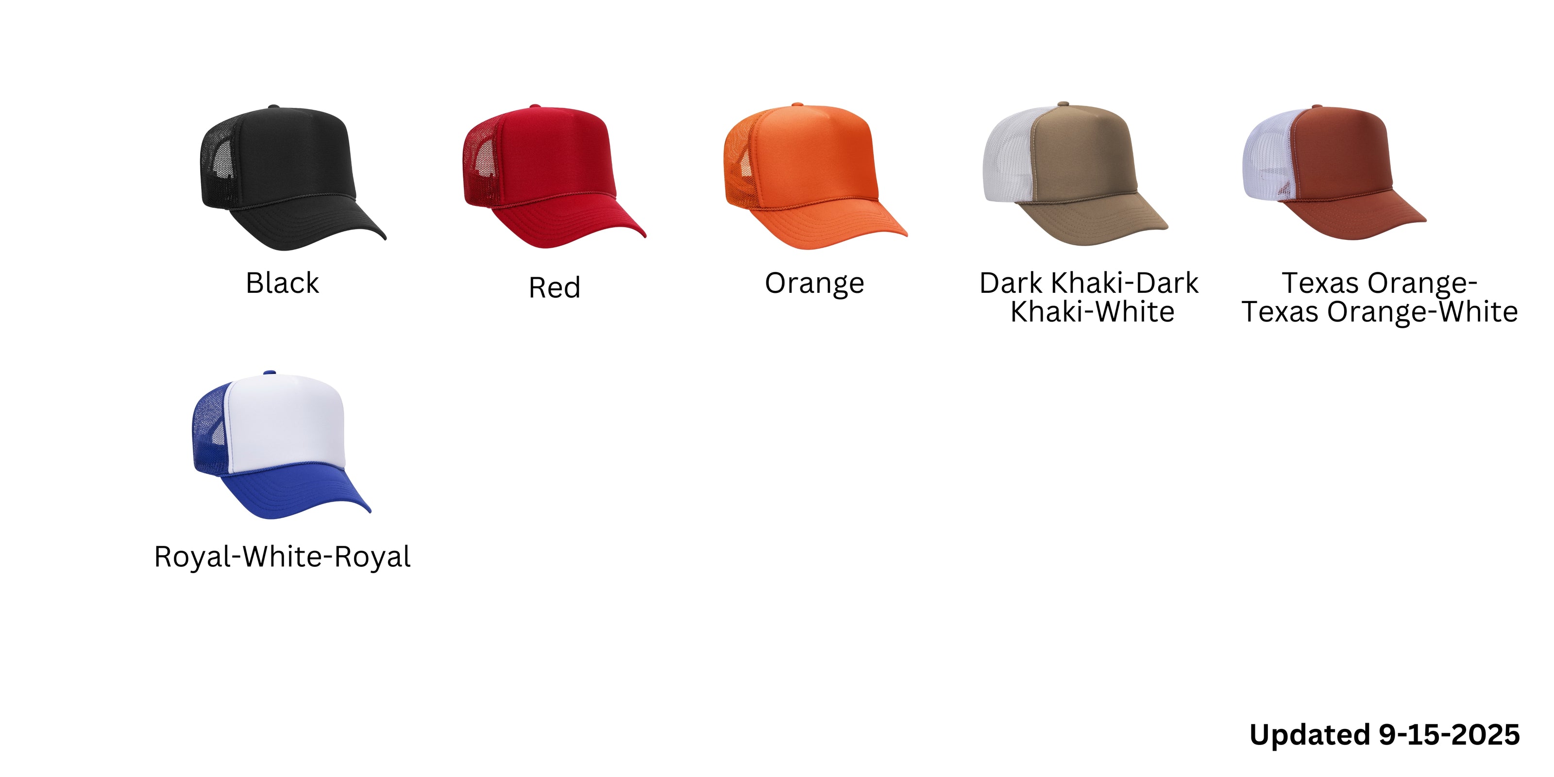 - Scroll to the "Trucker Hat Colors" section and pick your color(s).