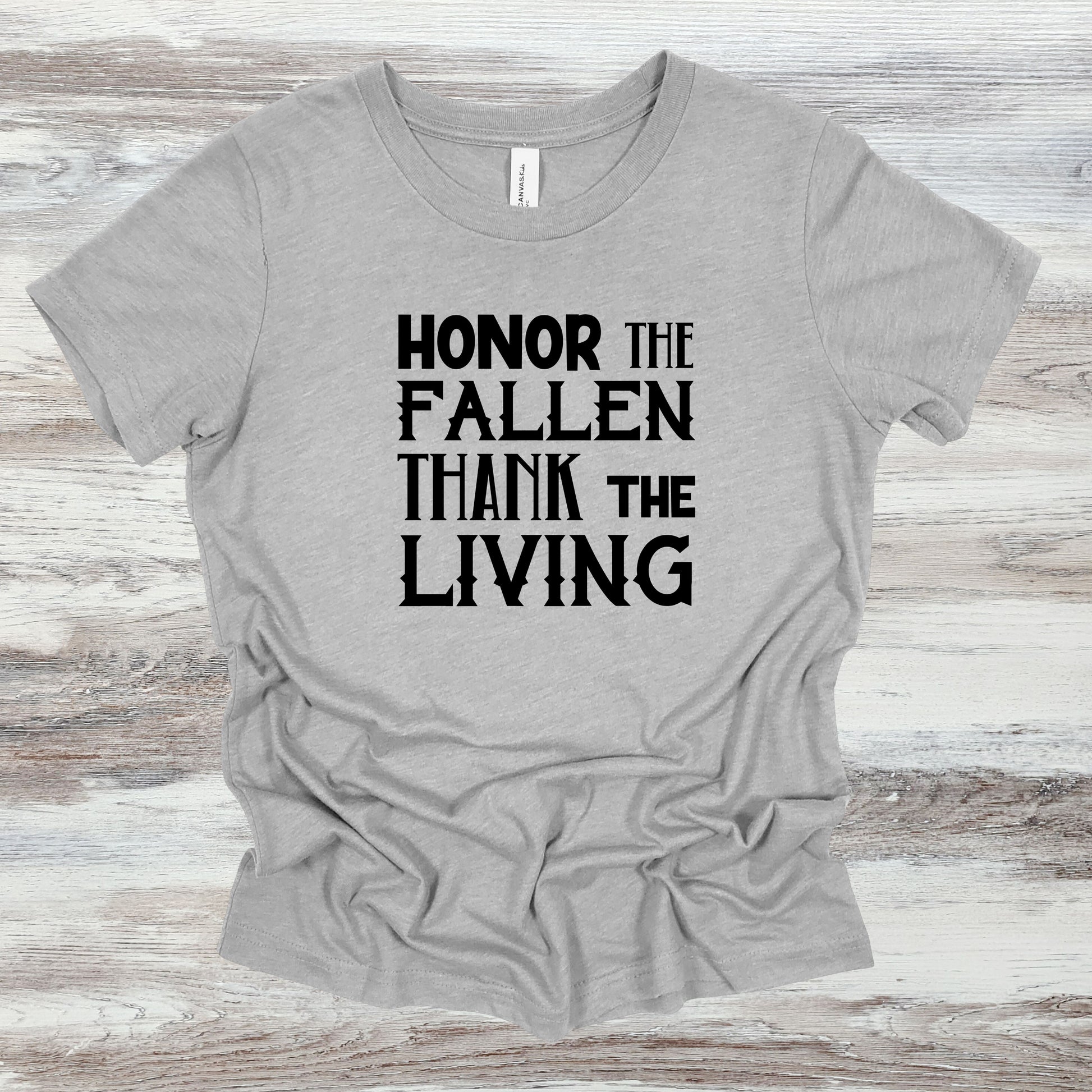 This youth "Honor The Fallen, Thank The Living" short sleeved tee has the following: