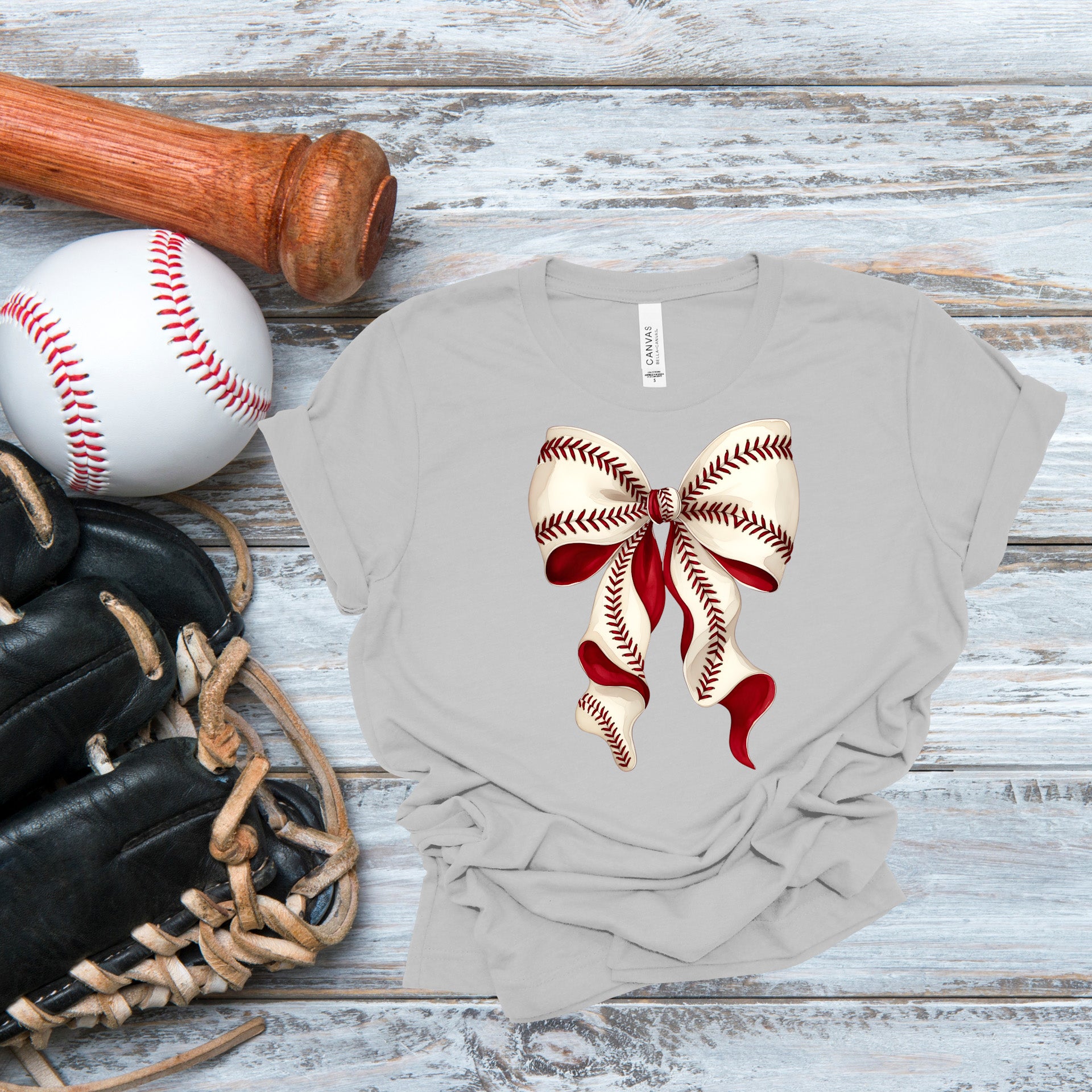 This adult "Baseball Coquette Bow" short sleeved tee has the following