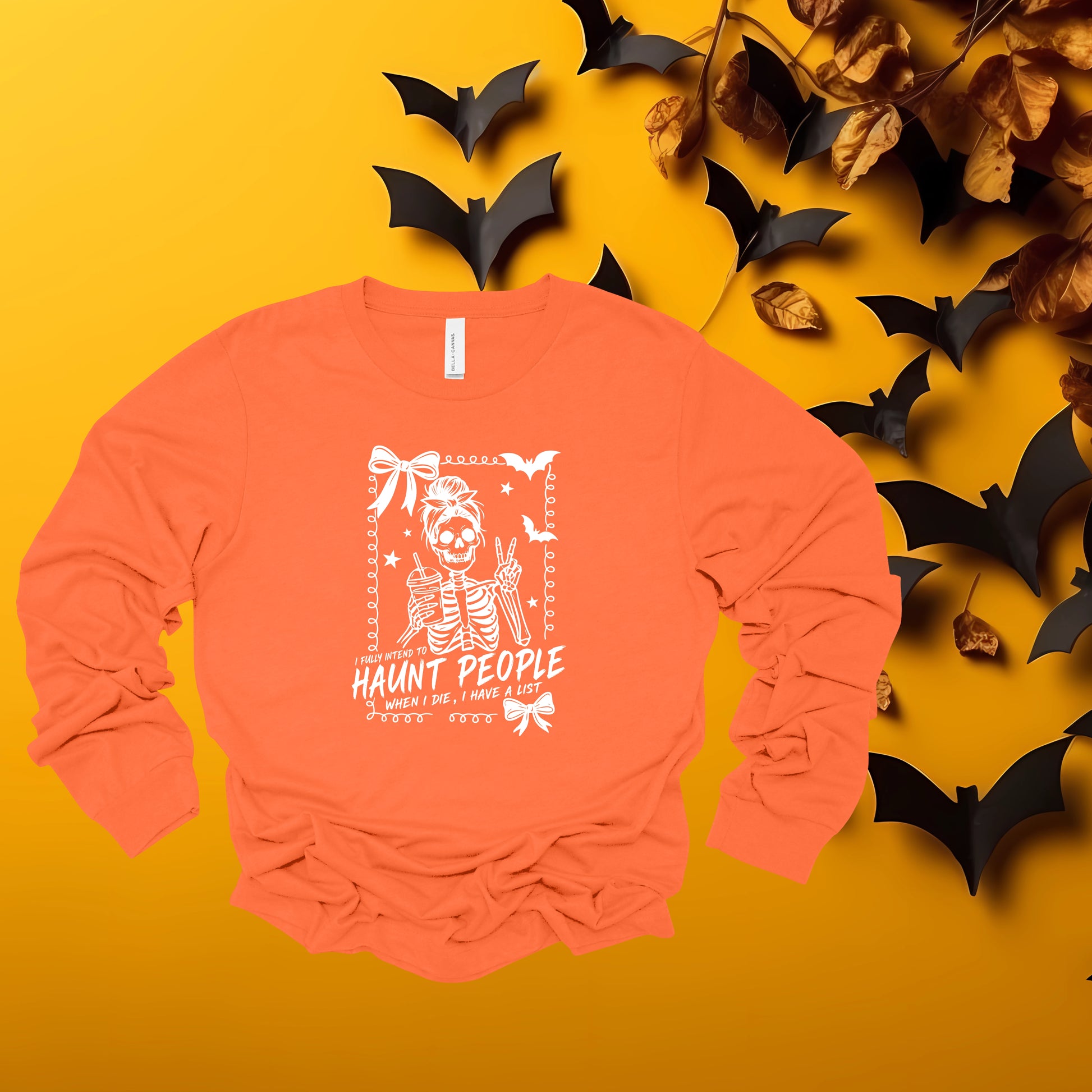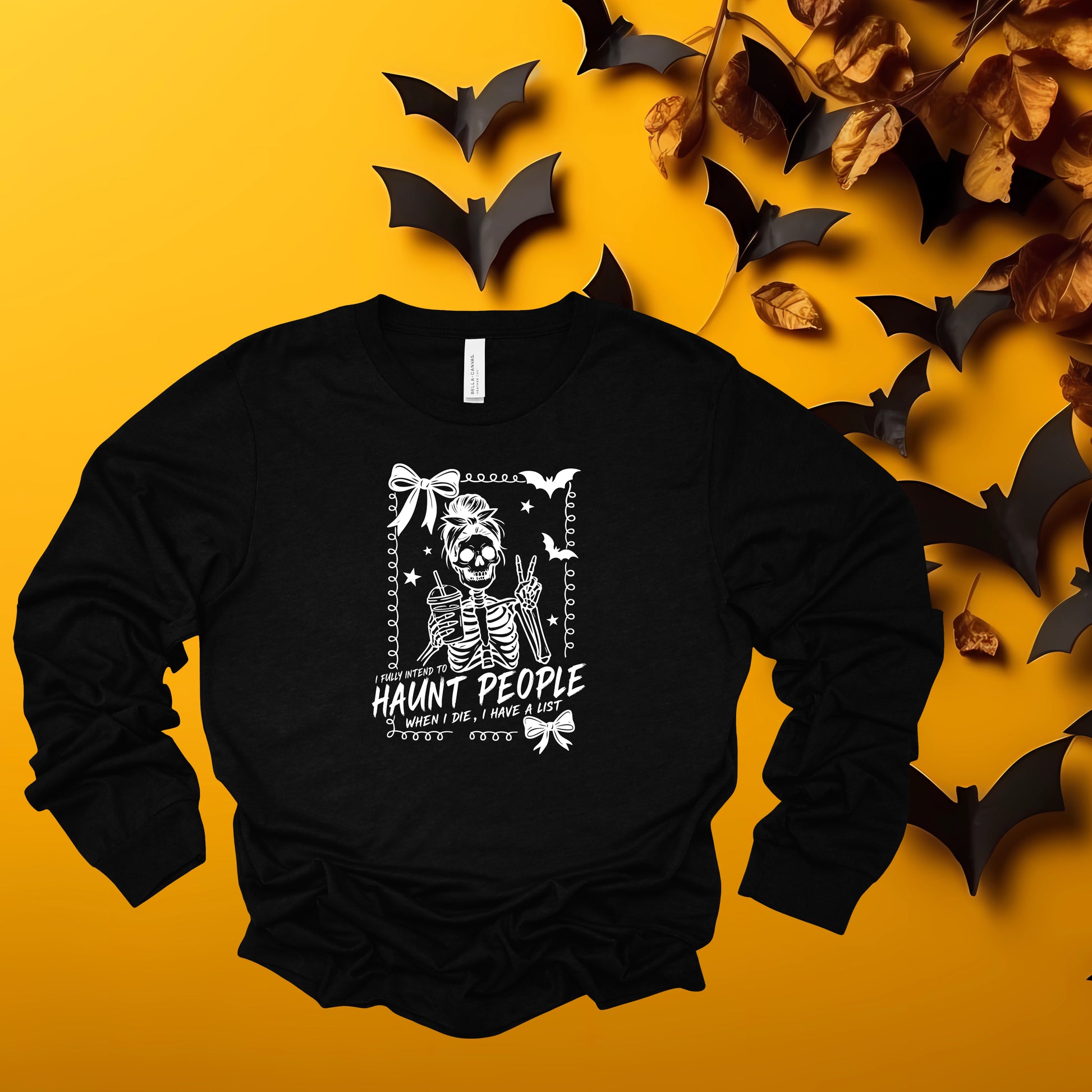 This adult "I Fully Intend To Haunt" long sleeved tee has the following