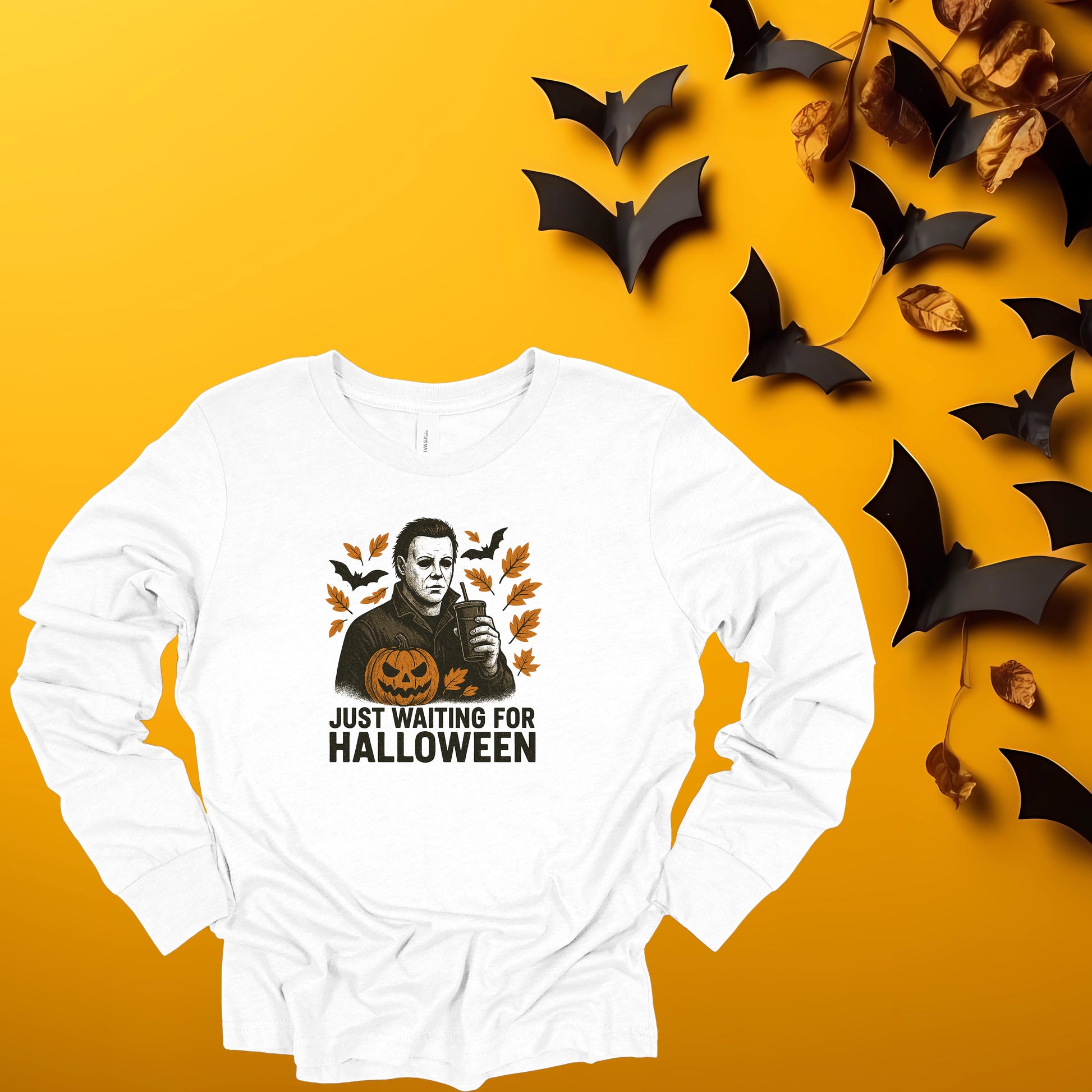 This youth "Just Waiting For Halloween" long sleeved tee has the following