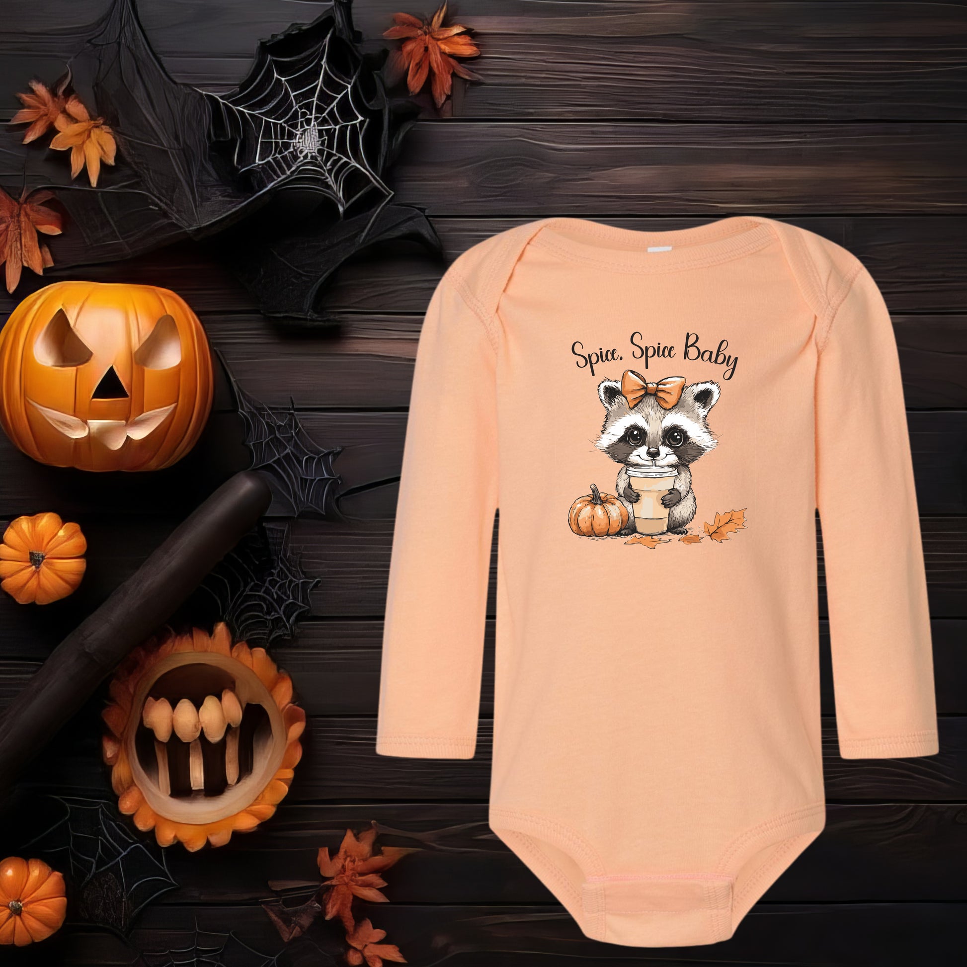 This infant "Spice, Spice Baby" long sleeved onsie has the following