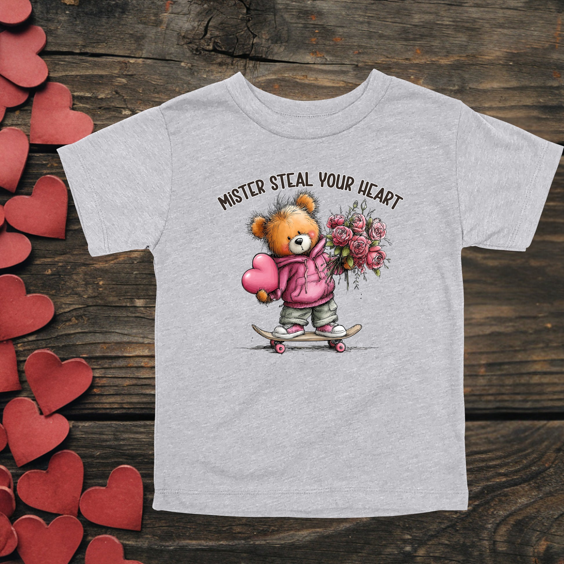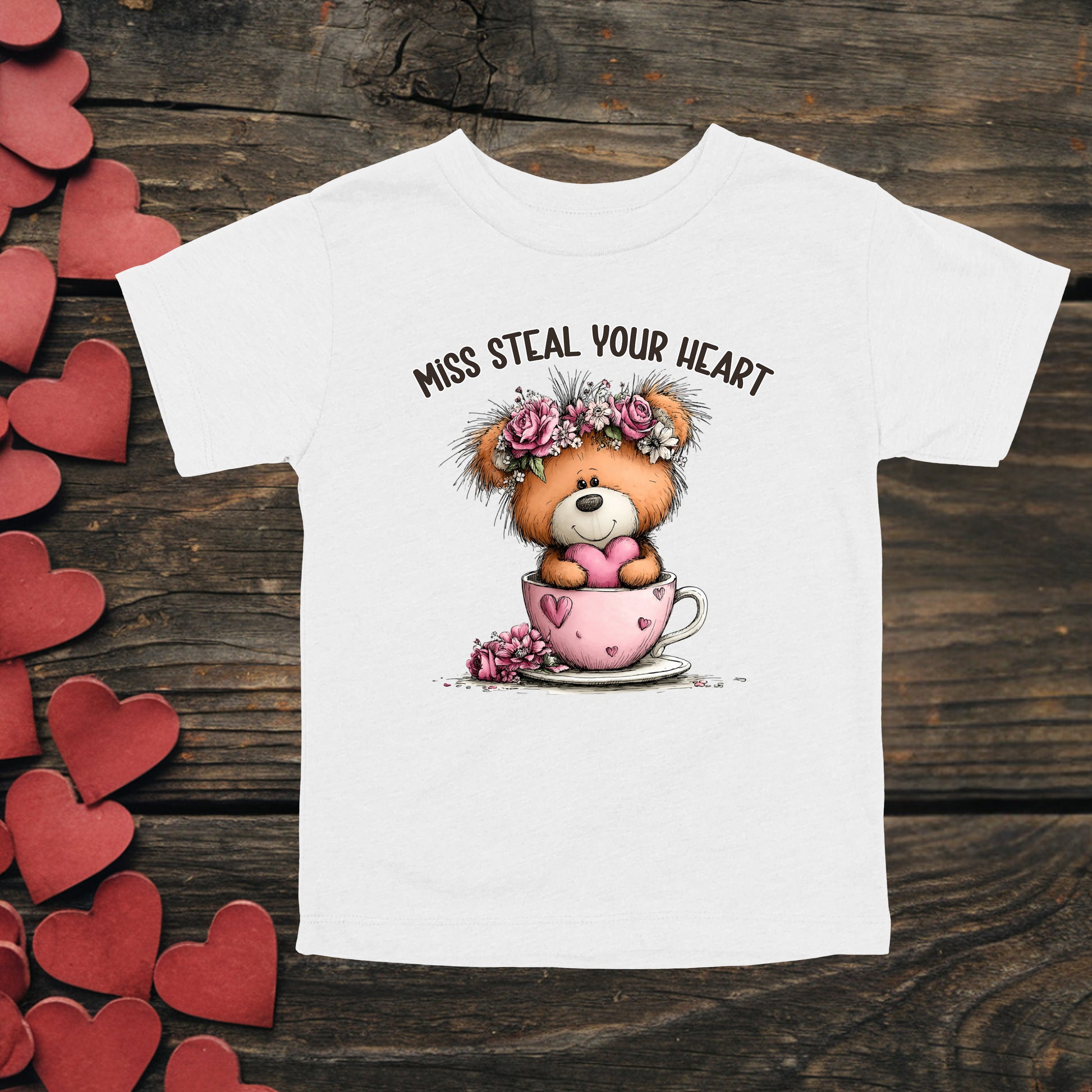 This toddler "Steal Your Heart" short sleeved tee has the following